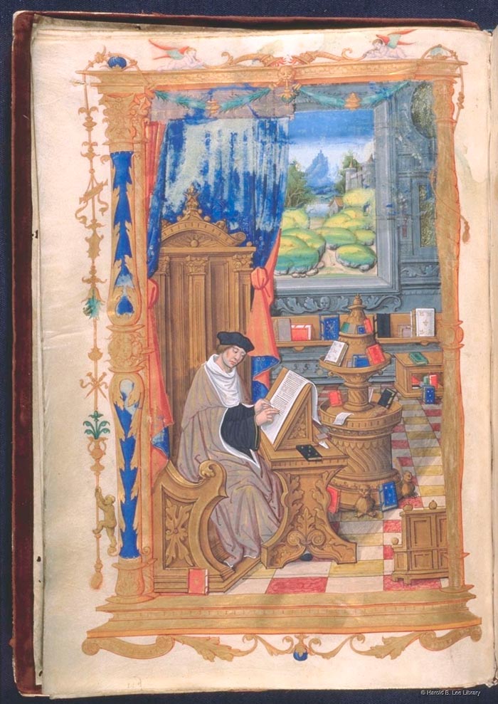 Scribe (Jerome?) in his study. Life, Death and Miracles of Saint Jerome. French, c. 1495-1515.